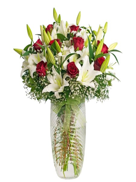 Beyaz Lilyum ve Beyaz Gül Buketi